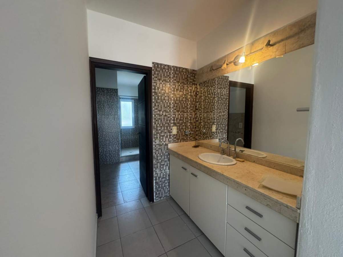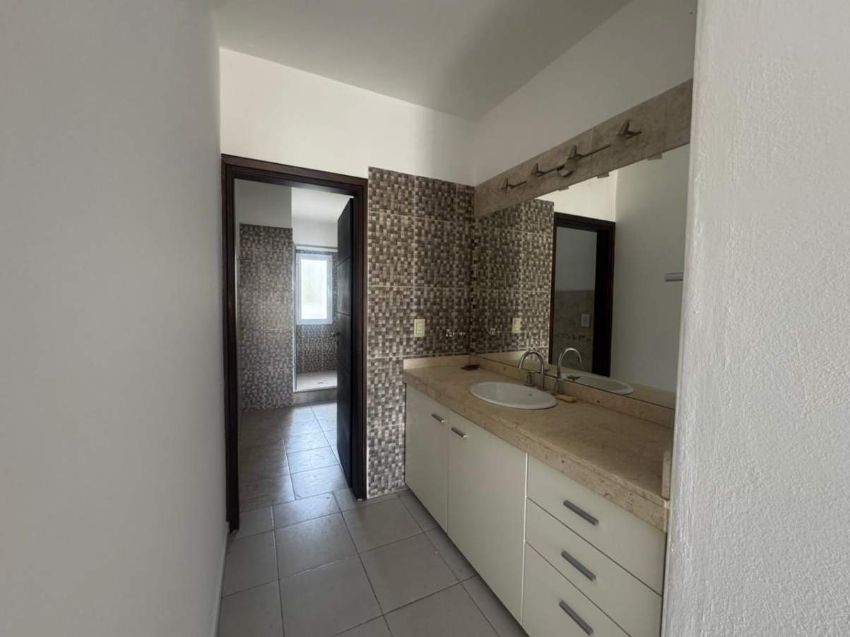Baño principal completo con antebaño, mesada de mármol y bacha Ferrum.